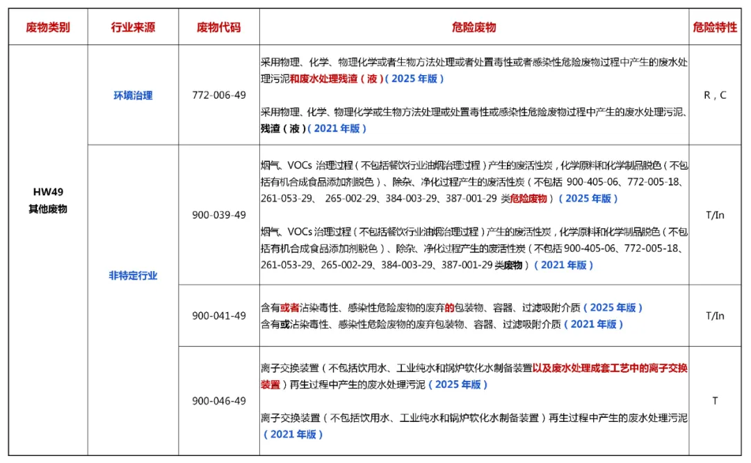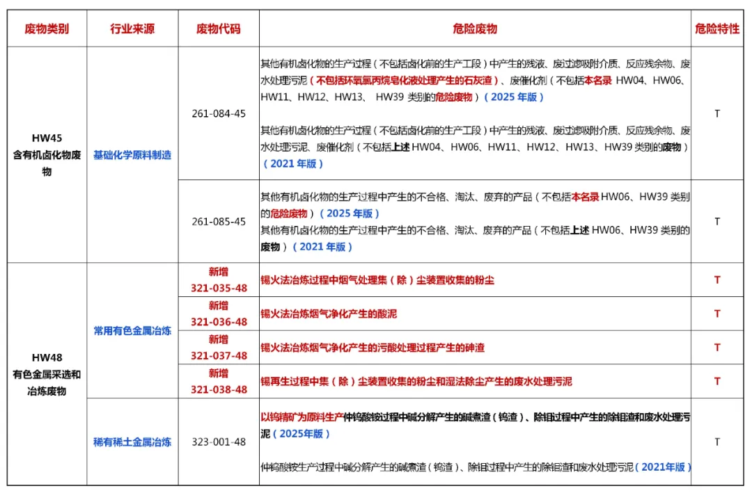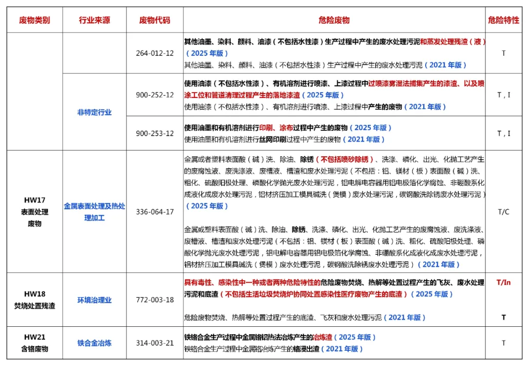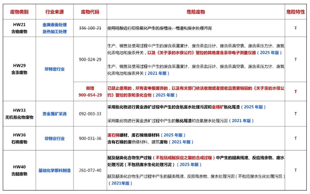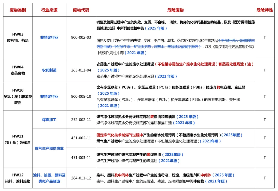 2025版 vs 2021版丨《危废名录》修改对比表